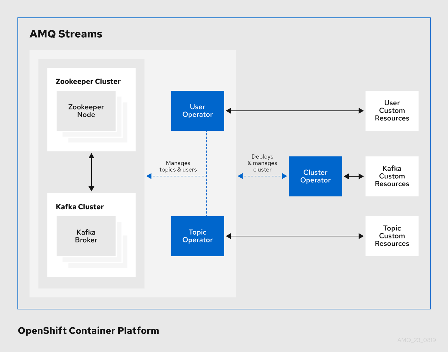 Folgende Grafik Zeigt die AMQ Streams zugrundeliegende Architektur: